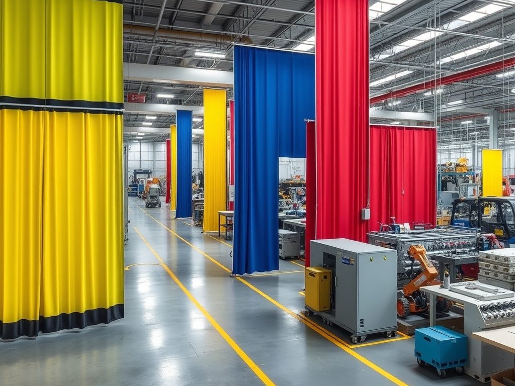 | Kurtyny spawalnicze | Chronią przed promieniowaniem, iskrami i odpryskami metalu. | W spawalniach i miejscach pracy z zagrożeniem pożarowym. |